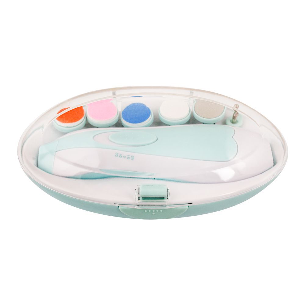 A baby nail trimmer is a gentle and safe tool designed to trim and smooth a baby’s nails without causing pain or discomfort. It uses a soft, rotating pad instead of sharp blades, making it ideal for newborns and infants.
